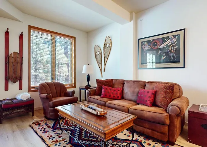 Offering spa facilities such as a Jacuzzi, the spacious 112 m² Mammoth Green 118 Located On Sierra Star Golf Course, Private Patio, Summer Pool Condo is situated nearly a 10-minute drive from Schoolyard Express. Guests can get to Heimo's Express nearly a 10-minute drive from the 2-bedroom apartment.